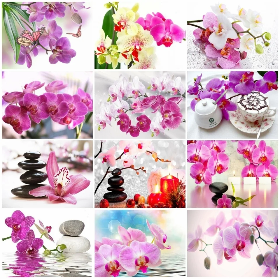 Алмазная картина Название: AZQSD 5D Diy алмазная живопись Орхидея Камень Стразы картины полная дрель Алмазная Вышивка Цветы Декор наборы крестиков