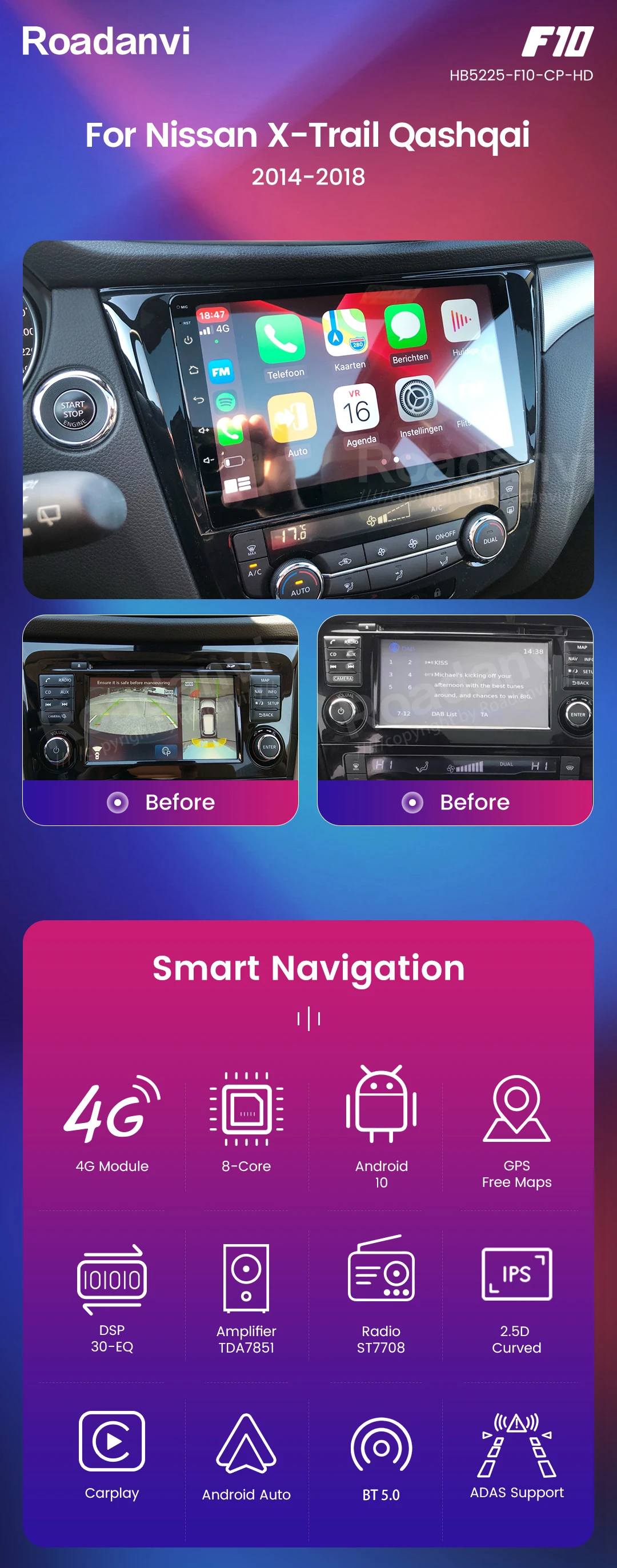 Если ваш автомобиль 2019-2021 с 7 "сенсорный экран и бозе усилитель, пожалуйста, сделайте заказ: F10-CP-HD-KB068