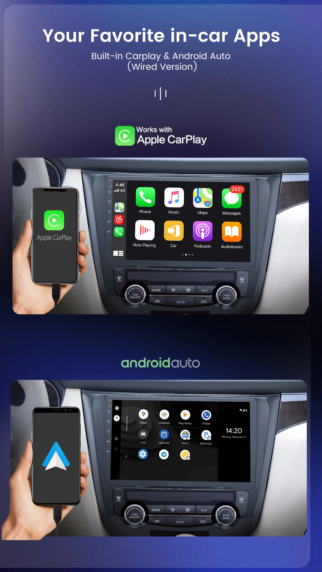 1. Включает встроенный чип carplay, который может поддерживать Carplay и Android Auto;