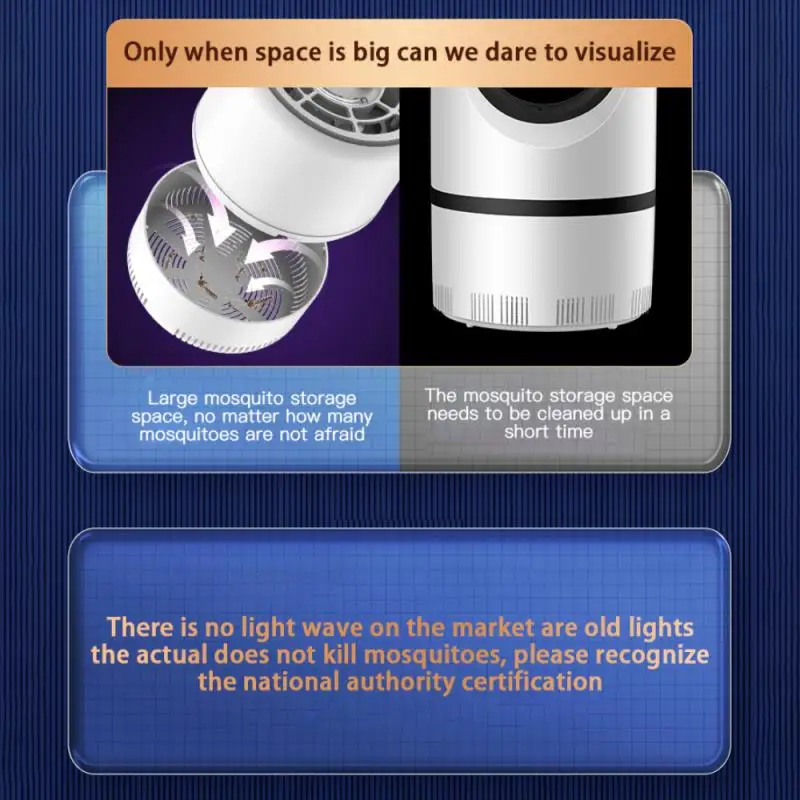 【Upgraded комаров Killer】: Расширенный 2-в-1 мухобойка и привлекательный светильник летать насекомых, 365NM фиолетовый светильник волна, эффективное комаров захвата, объемного типа фотокаталитический 365 технология нанесения нанометрового фиолетовый светильник волна, сильный эффект улавливания комаров, всасывайте его в ящик для хранения комаров, 22 вертикальных барьера для защиты фитиля от повреждений. УФ-лампа обладает превосходной технологией электропитания и эффективной многогранной защитной схемой, которая помогает экономить до 20% электроэнергии.