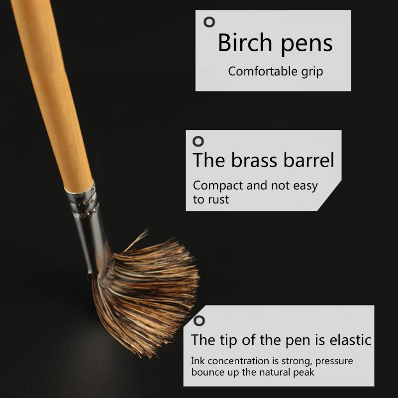 3. Кисть-ручка с чернильной ручкой с высокой концентрированной средней эластичностью, насадка под давлением, естественно собранная на пике, не кудрявая, не выпадение волос, не Diaoqi, прочное использование, гладкая, очень легко раскрашивать кисть.