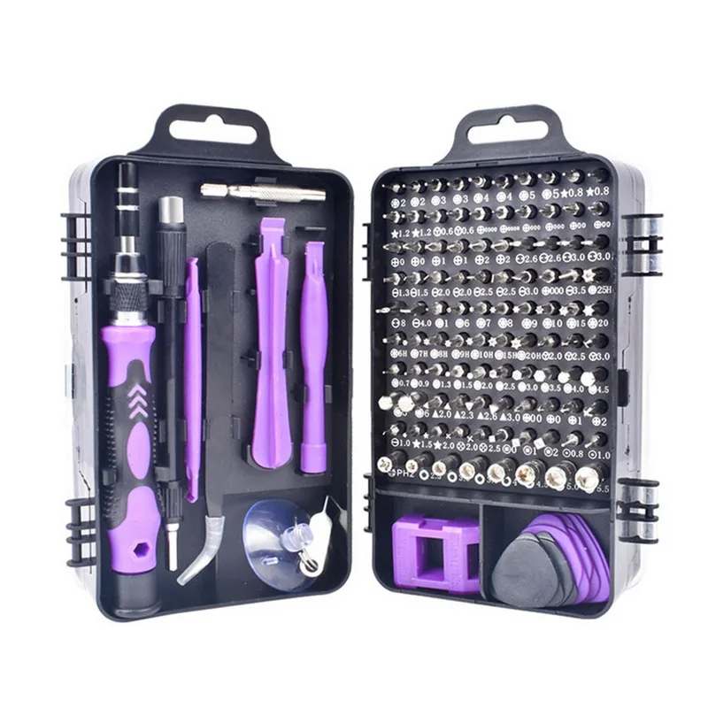 * Магнитные прецизионные биты и Многофункциональность: 115 в 1 Набор для ремонта включает 98 типов отверток, и все биты магнитные, стабильно соединяются с ручкой.