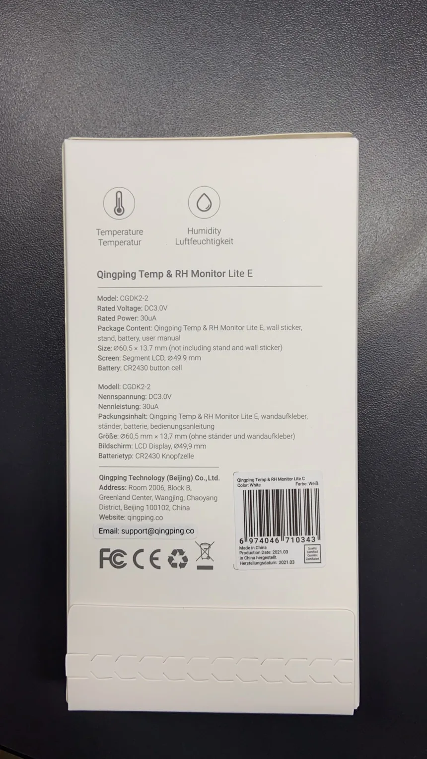 Название продукта: термометр ClearGrass и гигрометр lite
