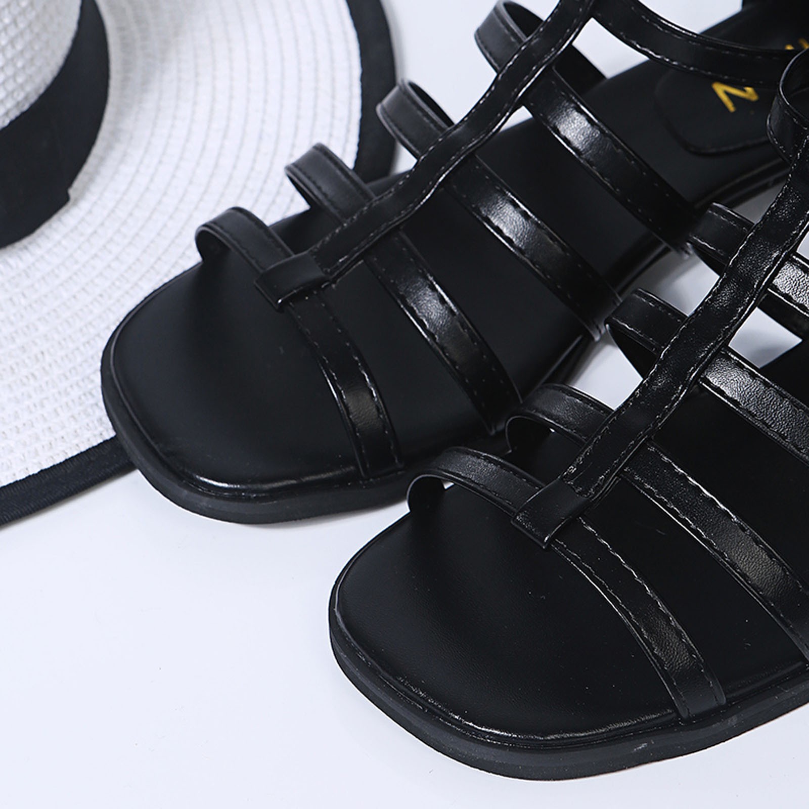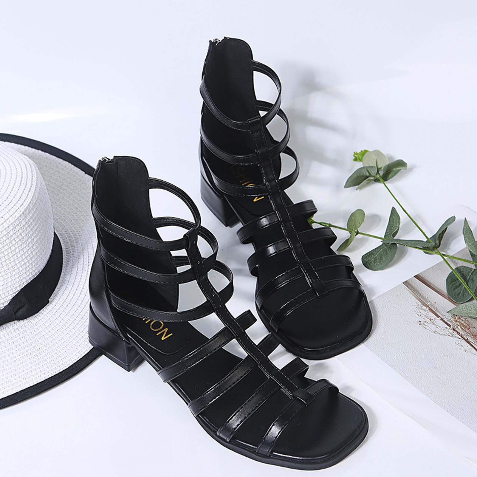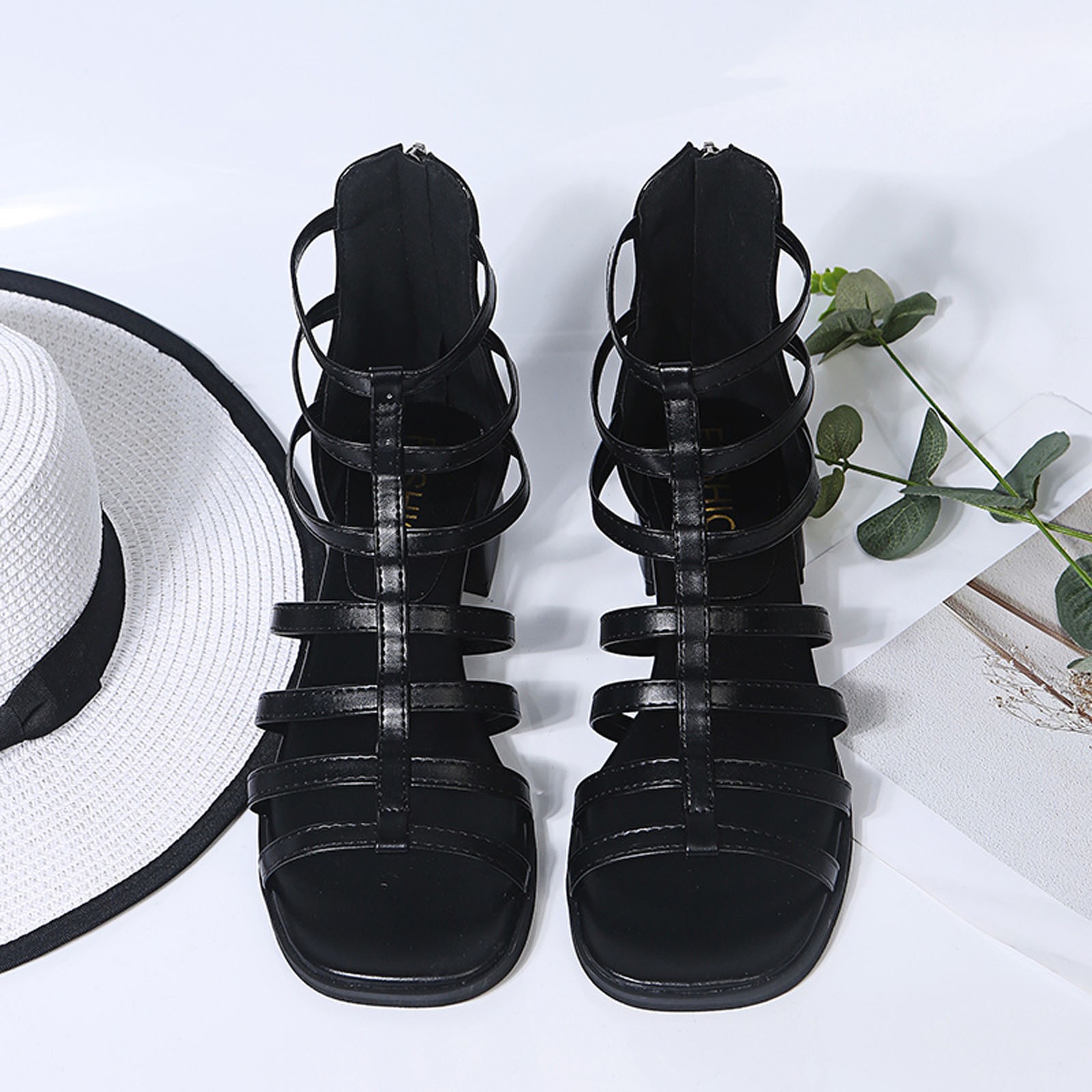 [Особенности: открытый носок, застежка-молния, квадратный, однотонный принт, эластичный ремешок для удобного надевания и снятия, нескользящая резиновая подошва.