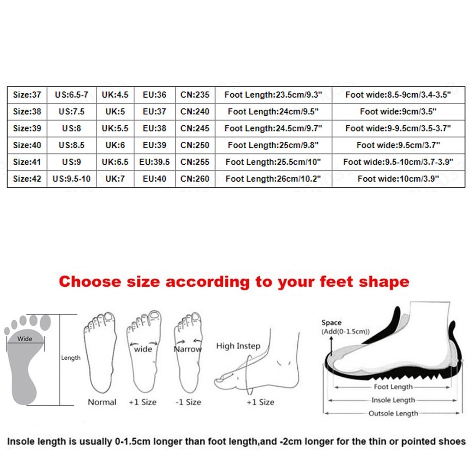 Теплое напоминание:Различные стили обуви, пожалуйста, выберите размер в соответствии с типом вашей стопы.