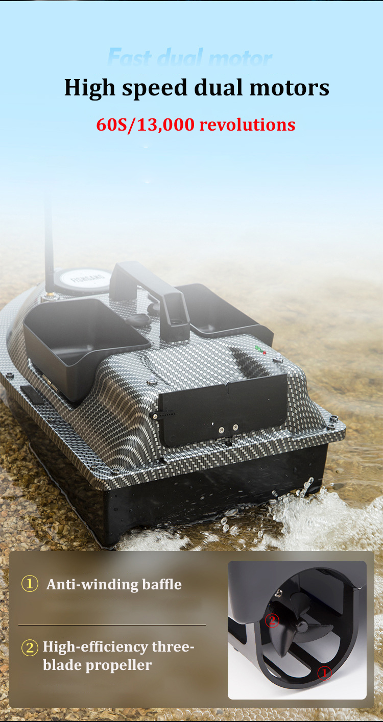 Сильная мощность: три пропеллера и двойной двигатель обеспечивают сильную мощность лодки дистанционного управления.