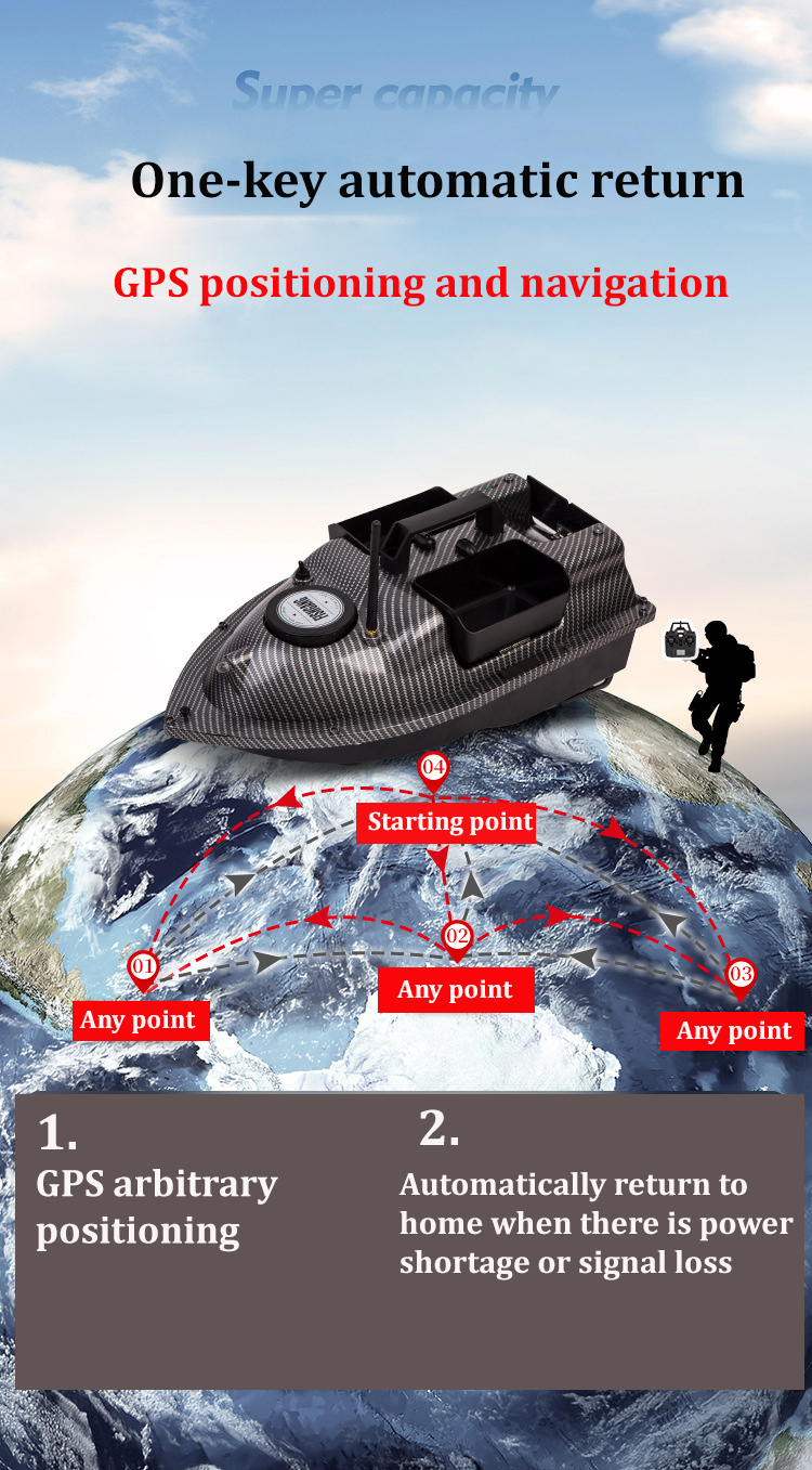 Возврат низкой мощности (версия GPS): при обнаружении потери сигнала или низкого заряда батареи лодка автоматически вернется в исходное положение через 15 секунд. Не беспокойтесь о потере.