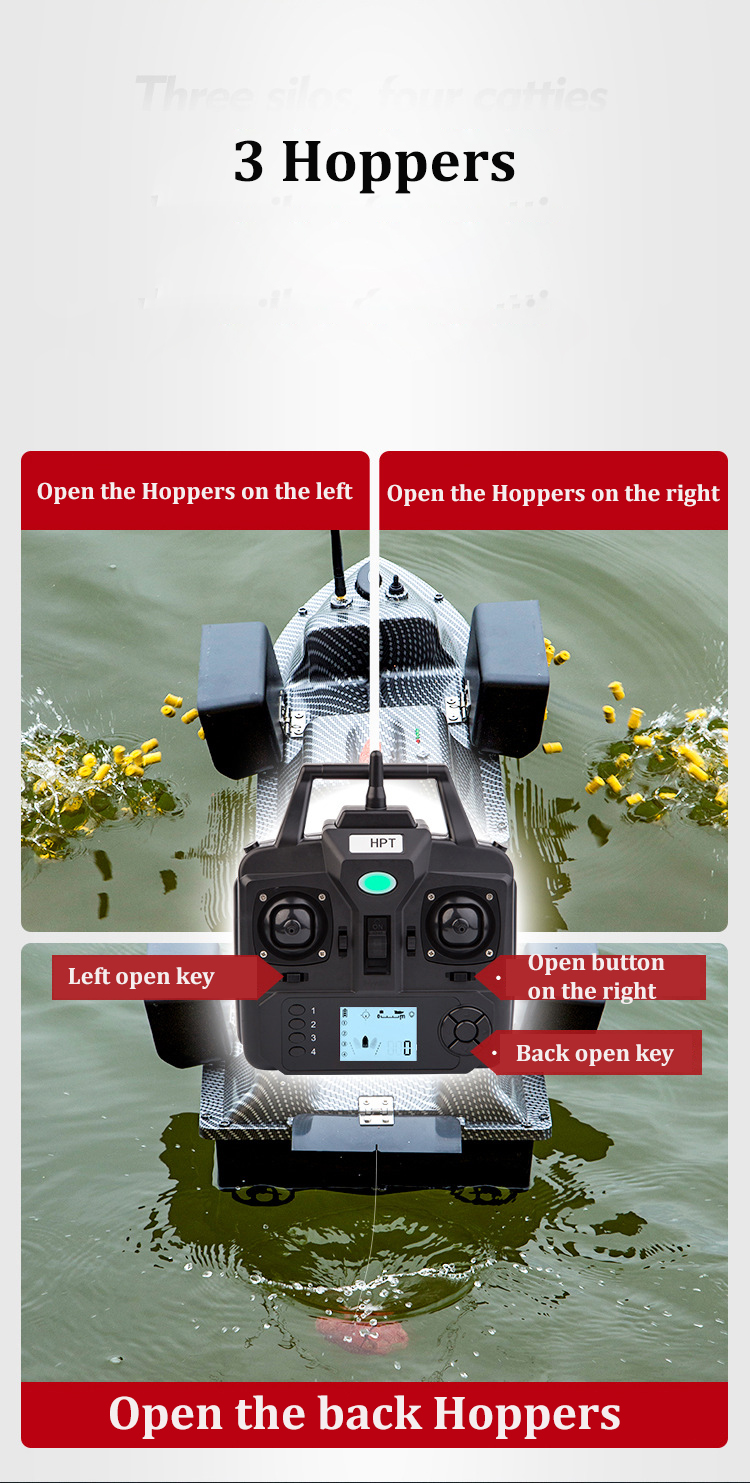 Три управляемых гнезда для хранения: три хоппера для загрузки различных наживок, и вы можете открыть их самостоятельно.