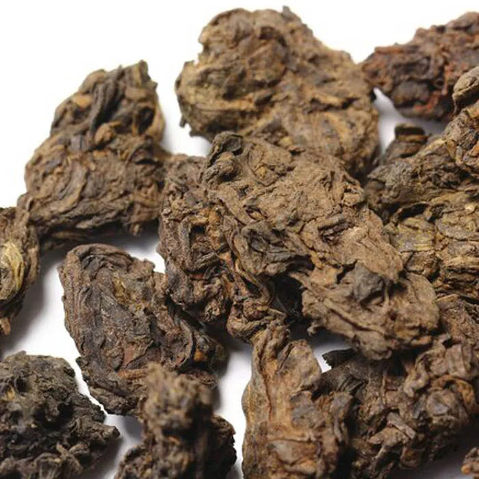 Старые чайные головы, Старые головы дракона, Комковой дикий пуэр, Лао Ча тоу. Все это суть название одного чая. Он изготавливается из естественной корочки которой покрывается мейча (заготовка для пуэр)при ферментировании. Чай слипается в небольшие комочки и существенно меняет свои вкусовые качества. Раскрывается данный чай далеко не сразу к четвертому или третьему проливу вы получите глубину и яркость вкуса. Чай оставляет очень сладкое послевкусие, выдерживает достаточно много проливов. Прекрасный выбор для долгих чайных церемоний.