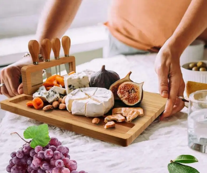 Современный стиль, бамбуковый хлеб, фрукты, сыры, разделочная доска, набор, простая разделочная доска, нож для сыра и вилка, разделочная доска