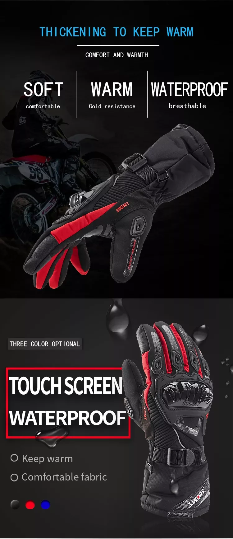 Suomy теплые перчатки для мотогонок зимние Мотоциклетные Перчатки хлопковые перчатки для мотогонок водонепроницаемые и ветрозащитные аксессуары для мотоциклистов