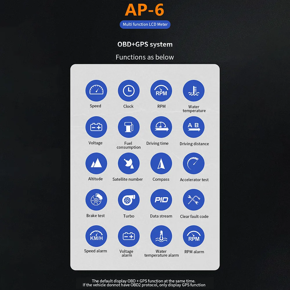 Общий счетчик имеет только режим OBD, в то время как AP-6 двойной режим: 0BD + GPS 2 в 1, система более стабильная и гладкая, дисплей данных более богатый.