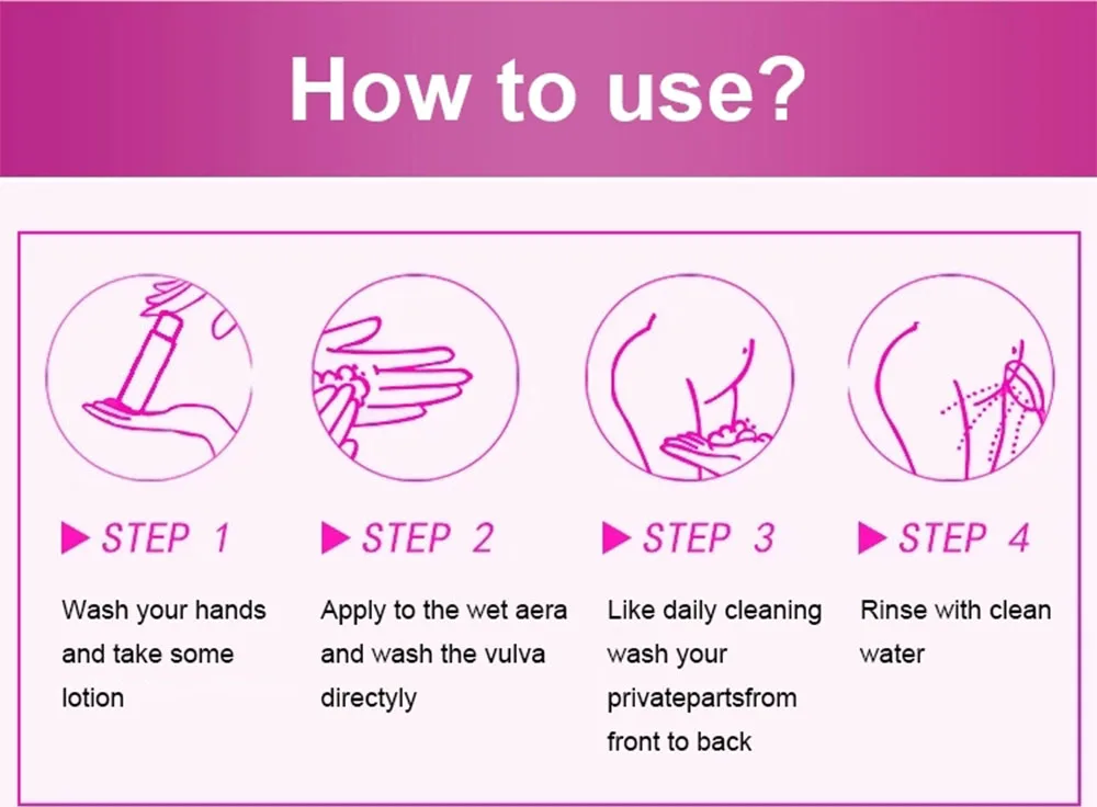 Take some foam in the hands, gently scrub the vulva, then rinse with water. Once a day.