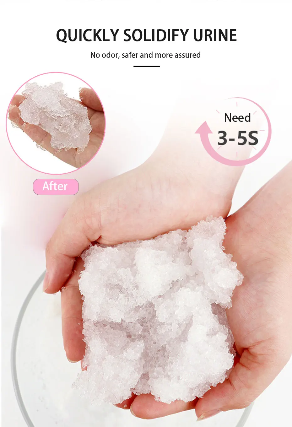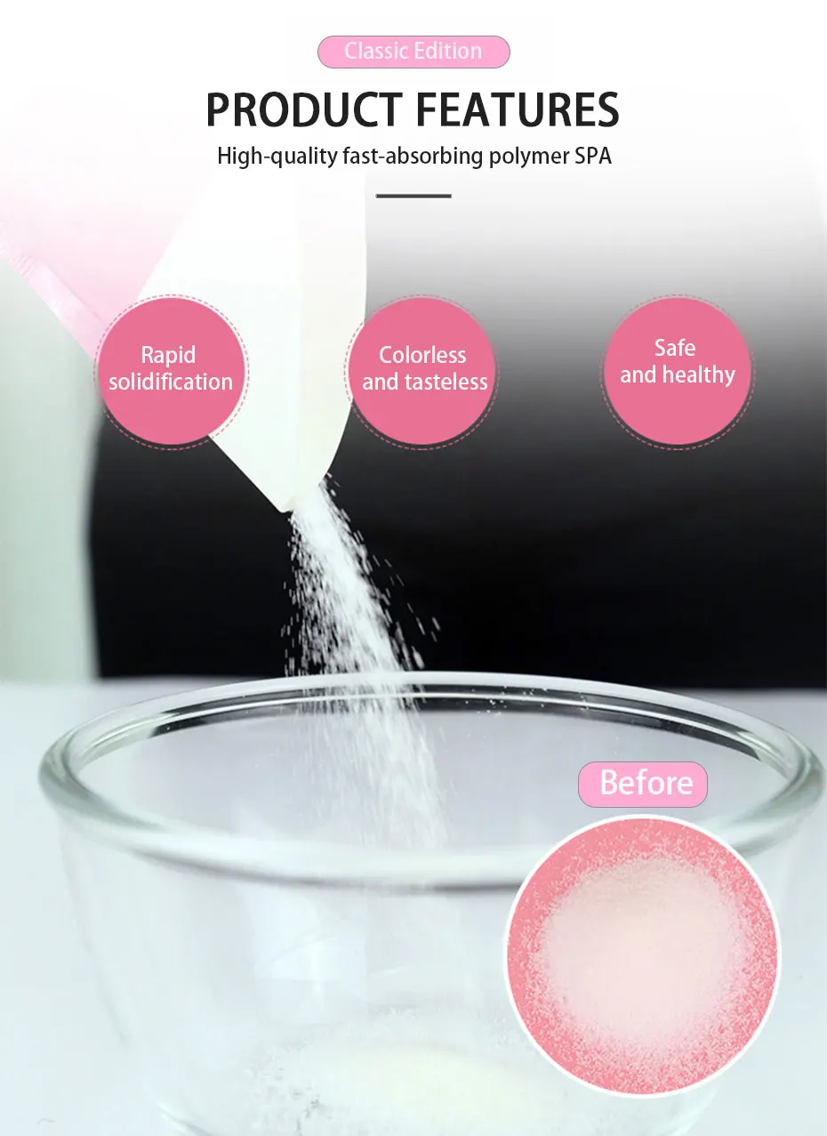 4. Он мгновенно гелирует после поглощения жидкости, тем самым делая ее герметичной, преобразует до 700 мл.