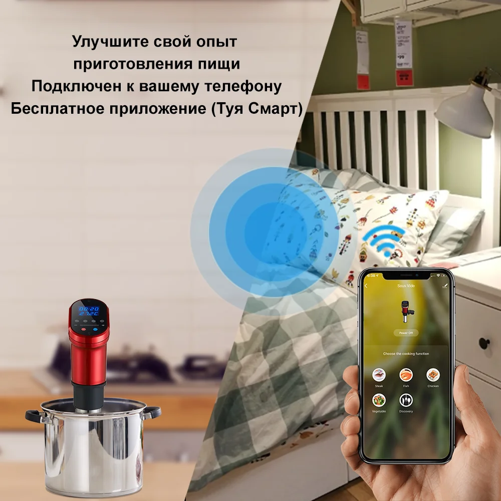 【 2,4 GHz Wifi Sous Vide Cooker】 --- этот циркулятор погружения Wi-Fi освободит вас и будет готовить везде, оставайтесь в курсе своего состояния приготовления, не находясь на кухне. Более того, хороший дизайн этой медленной плиты, вы можете поделиться устройством с семьей или друзьями в приложении, нет ограничений для нескольких людей