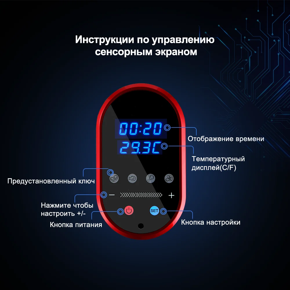 Точная настройка температуры/таймер Sous Vide: цифровая панель управления погружной циркулятор делает температуру точной до 0,1 °C и время до минут. Интеллектуальный широкий диапазон температур (95 ℃/203 Max Макс) и контроль времени (Макс 99h 59 минут) Позволяет готовить любой тип пищи, который вам нравится, и sous vide cooking сохраняет больше питательных веществ и витаминов, чем другие методы приготовления.
