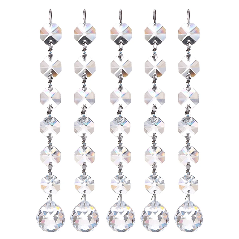 5 шт. хрустальные капли для люстры (20 мм прозрачный нижний наконечник из бисера + 6 шт. восьмиугольник из бисера + серебряный крючок)
