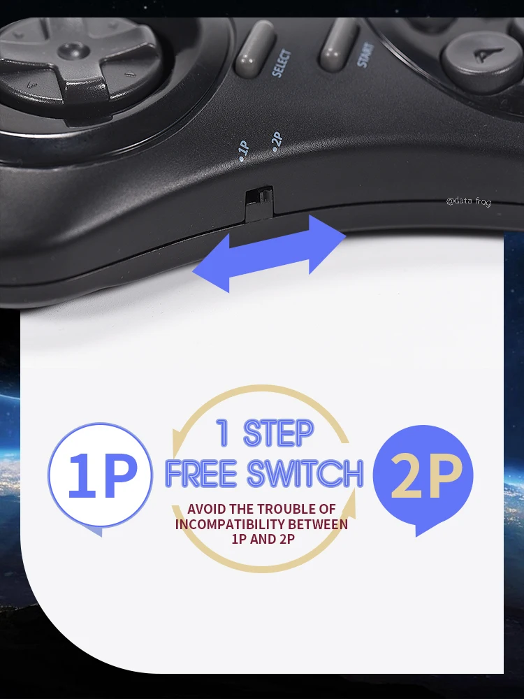 Под ручкой есть переключатель, который можно перемещать влево и вправо, вы можете свободно переключаться между 1P и 2P. Даже если вы играете в игру отдельно, вам не нужно менять контроллер
