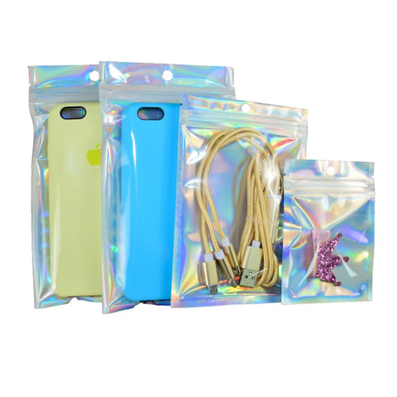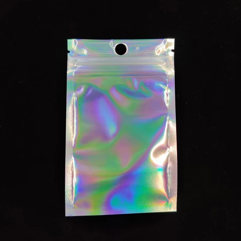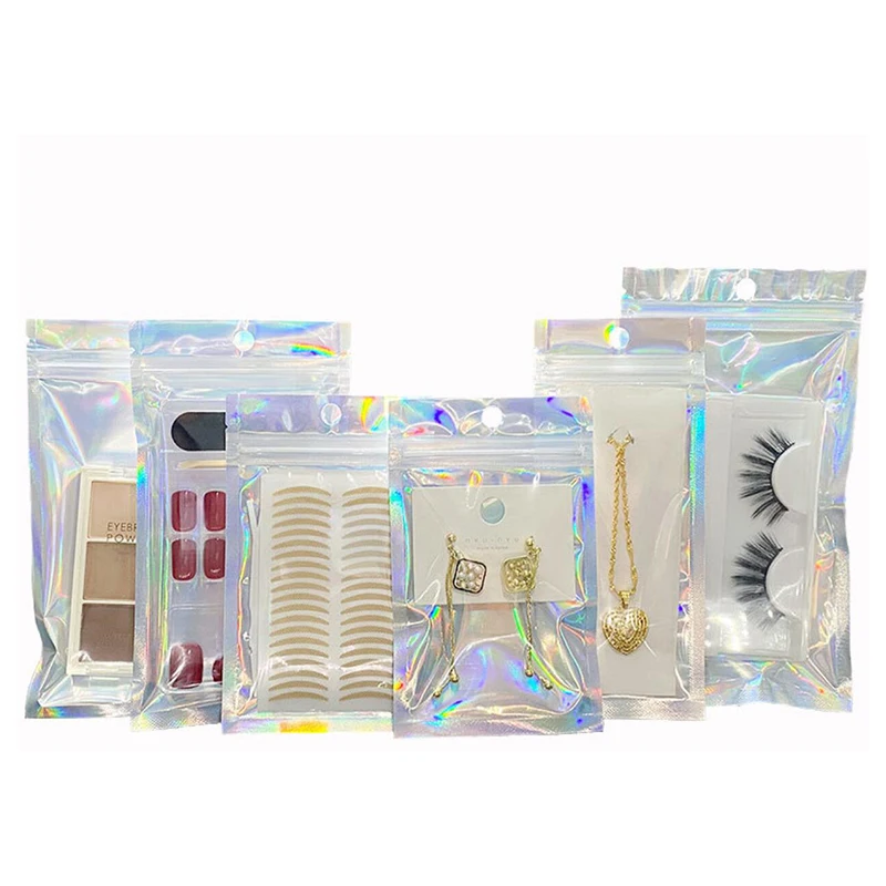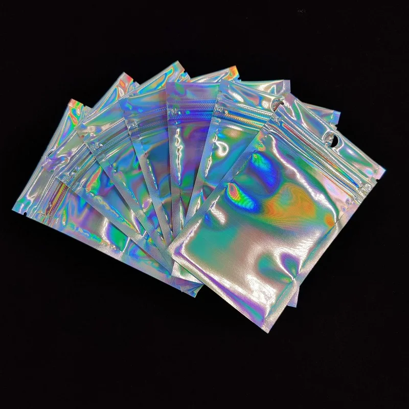 50 шт. лазерная сумка с замком косметическая упаковка самозапечатывающаяся Подарочная сумка прозрачная голографическая бижутерия толстые сумки из алюминиевой фольги с замком на молнии