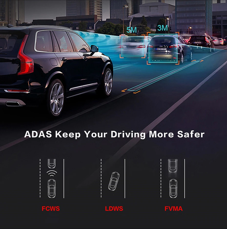 ** ADAS Plus Functnion ** LDWS Системы Предупреждение о выходе из полосы движения Предупреждение срабатывает при обнаружении вылета полосы движения на основе записанного видео в реальном времени. FCWS Предупреждение о столкновении Предупреждение срабатывает при обнаружении возможного прямого столкновения на основе записанного видео в реальном времени. FVMA Движущийся сигнал движения транспортного средства Предупреждение срабатывает, когда автомобиль впереди вас движется на основе видео-рекордера в реальном времени.