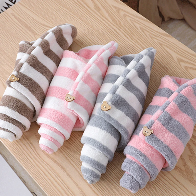 Многоцветная мягкая утолщенная Крышка для сухих волос, шапочка для душа, тюрбан, полосатая сухая шапка для волос, впитывающая сухая шапка для волос