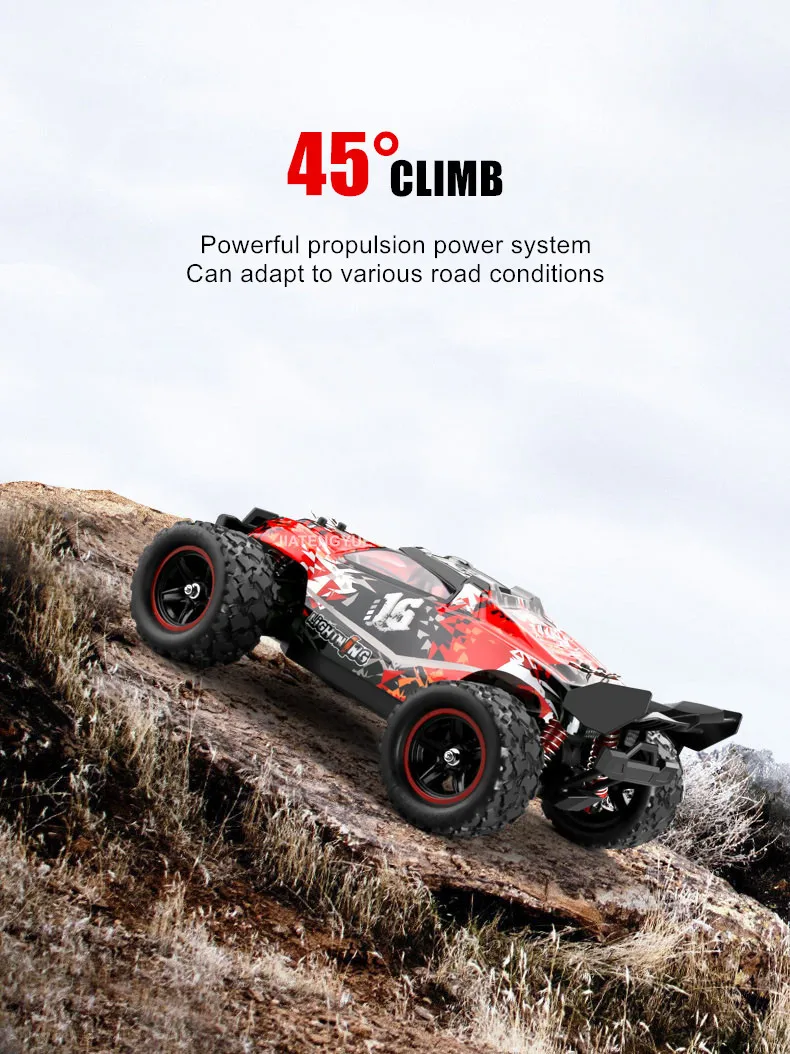 Конфигурация продукта: 4WD \ 2,4 GHz \ 1,5G рулевое колесо \ водонепроницаемый Интегрированный ESC \ защита от зарядки \ защита от помех двигателя \ Функция низкого напряжения питания \ независимая система подвески \ независимый амортизатор удара