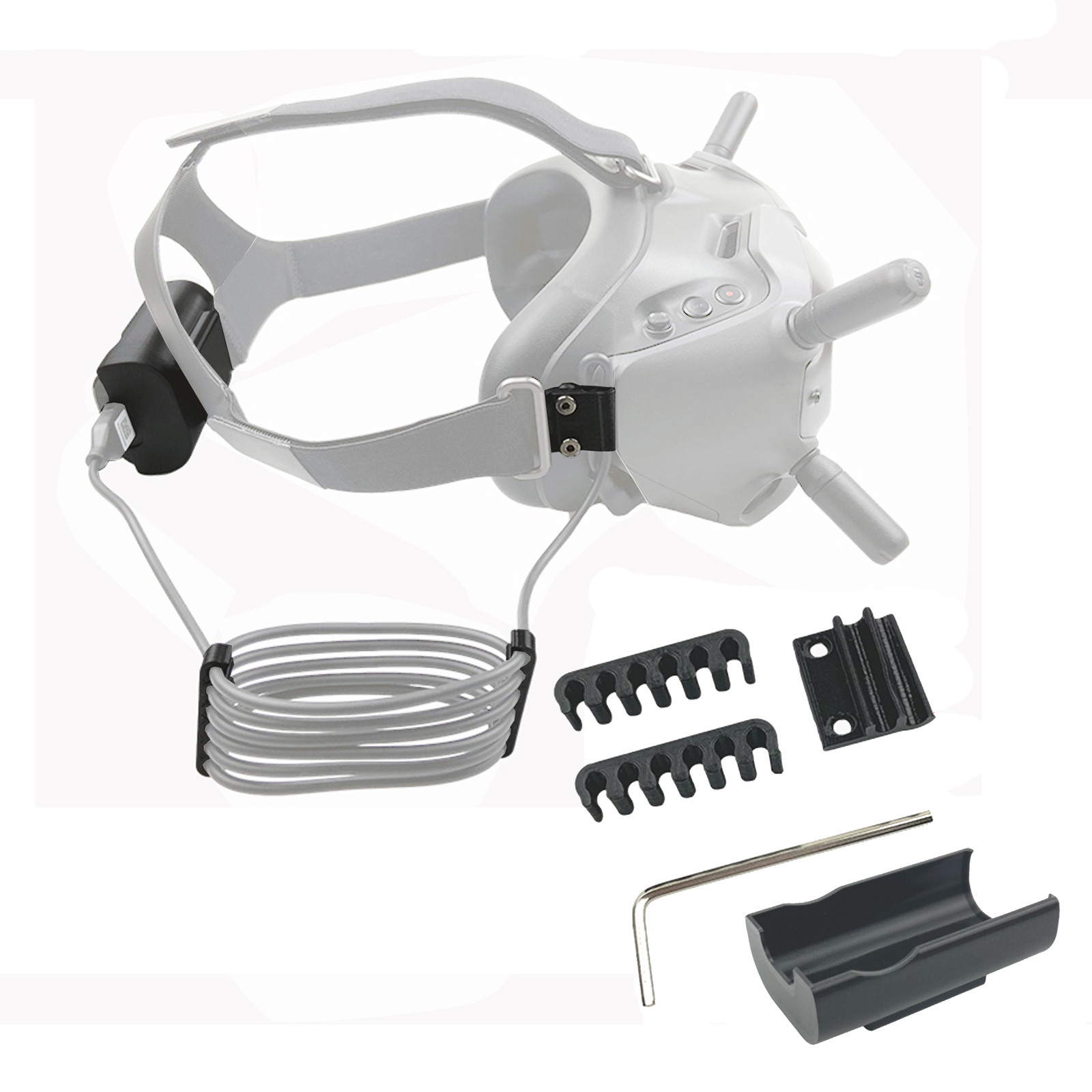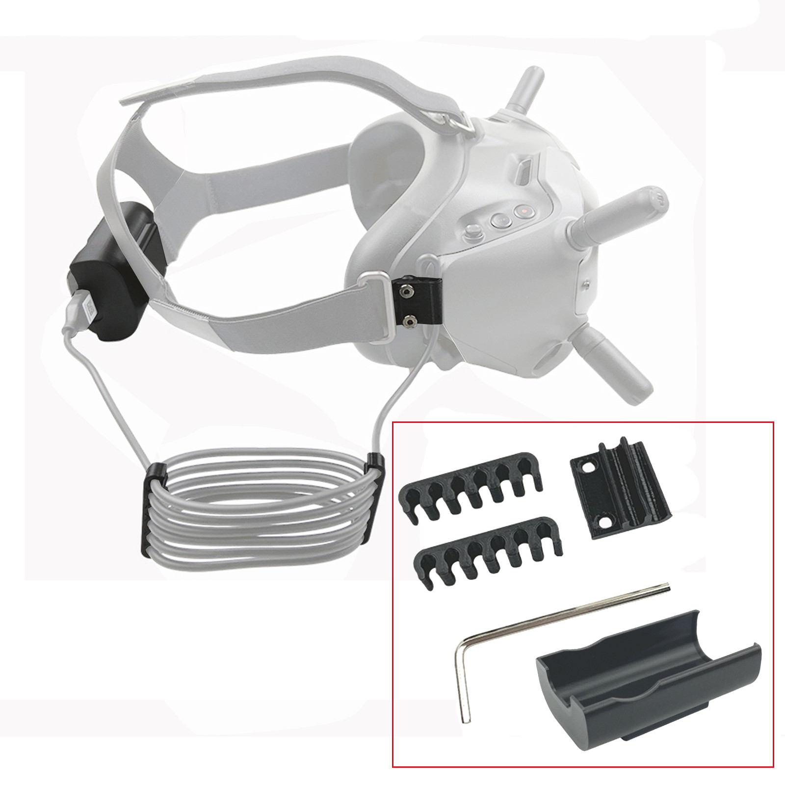 Don't worry about the lack of electricity and give up flying,All you need to do is have another charging cable and a fully charged battery. The battery bracket is light and easy to install on the headband without any additional burden The power cord retainer can prevent the power cord from suddenly loosening during intense flight, causing the glasses to power off. The power cord organizer can organize the long power cord and is easy to store, and it is convenient to use and no longer messy.You can manage the length of the charging line according to your needs Adopt 3D printing integral molding, plastic material, sponge is affixed to the part in contact with the head, comfortable to wear,Designed for DJI FPV Geggles V2,Increase play time.Small size, light weight, easy to carryDescription: