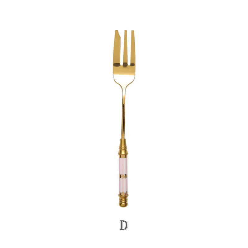 Вилка для фруктов из нержавеющей стали, Золотая керамическая ручка, вилки для десертного торта