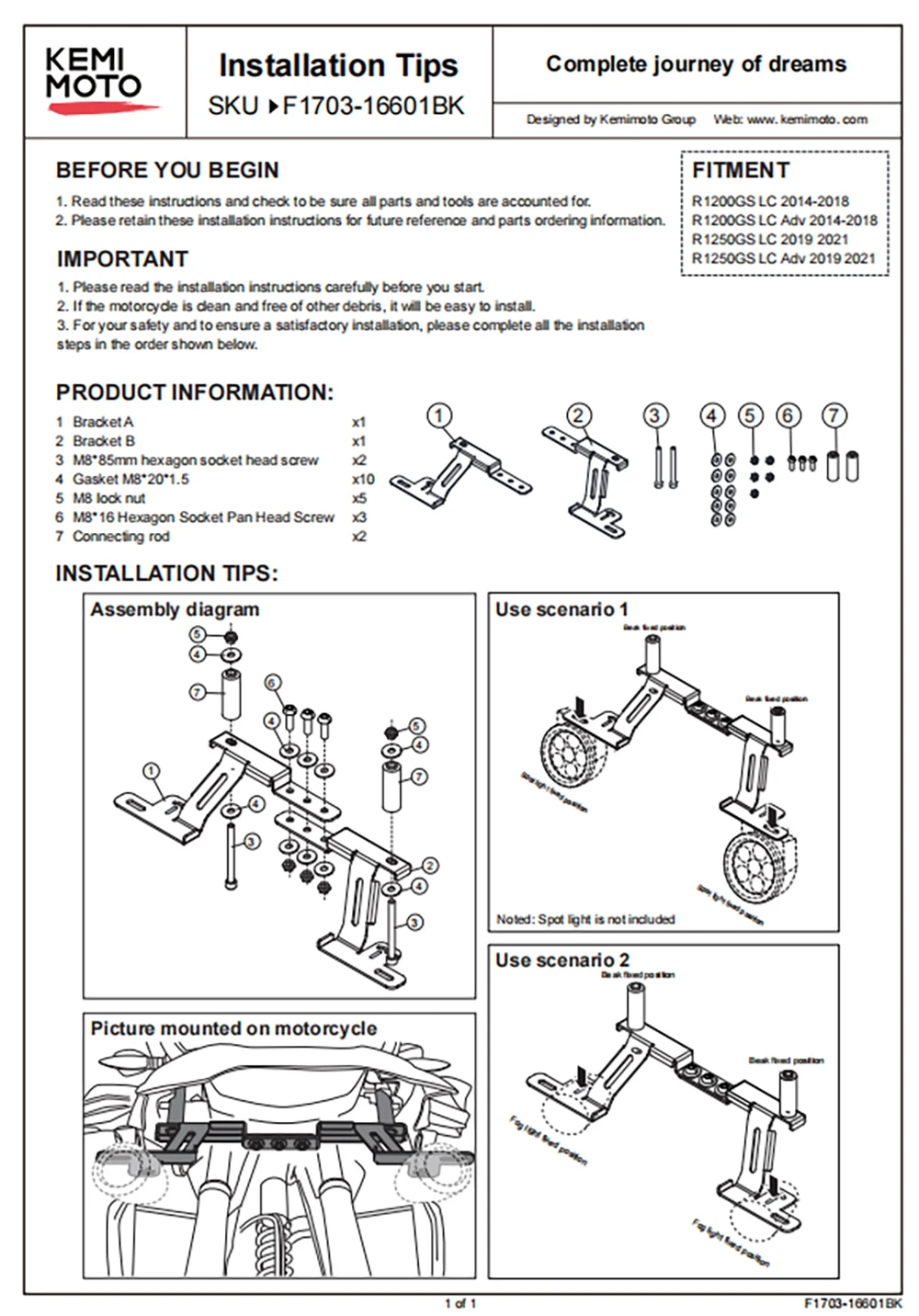 Этот специальный светильник для вождения автомобиля позволяет устанавливать любой светильник для вождения в оптимальном месте на мотоцикле.