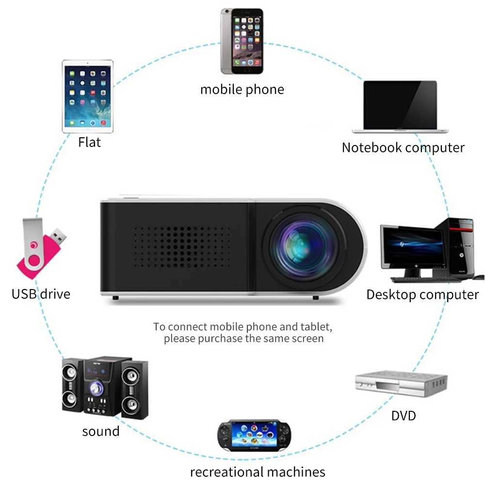 Комплектация: Хост-проектор, адаптер питания, пульт дистанционного управления, av-кабель три в одном, руководство