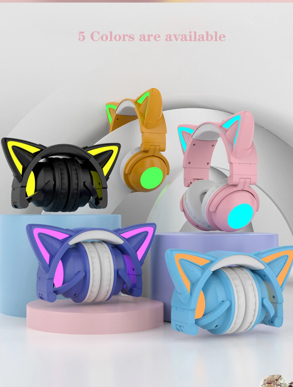 RGB кошачьи наушники, беспроводные гарнитуры с микрофоном 7,1, стерео музыка, Bluetooth 5,0, гарнитура, поддержка управления, светильник, цвет, лучший подарок