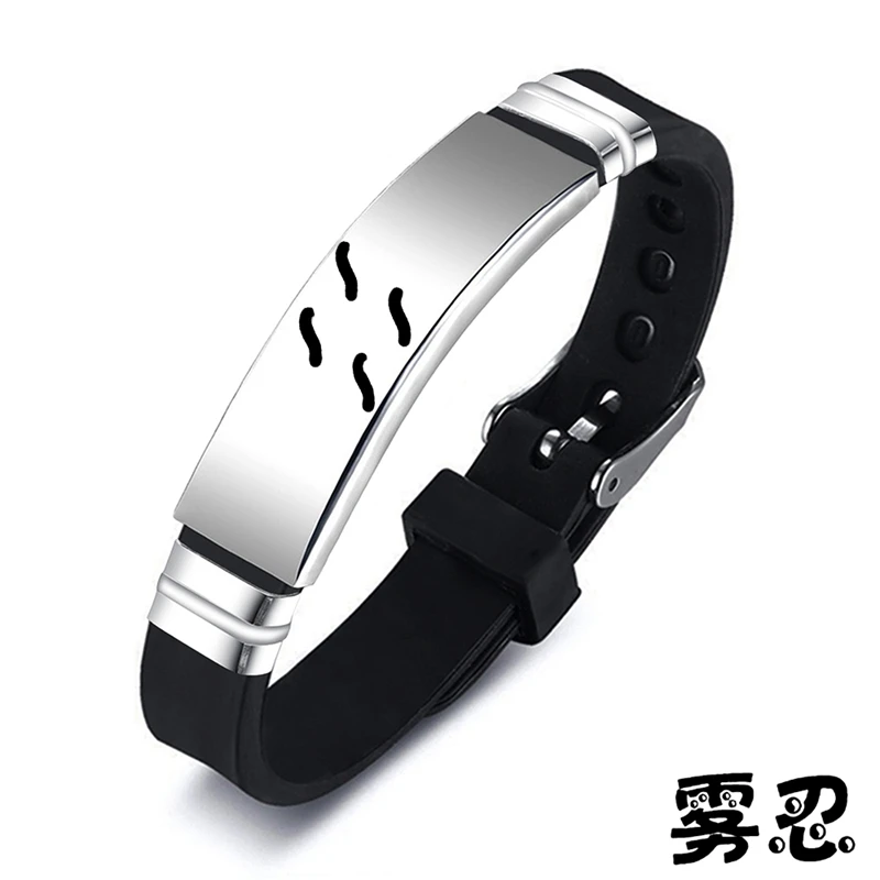 Классический Аниме Akatsuki Konoha песок туман рок облако Oto дождь логотип ниндзя браслет из нержавеющей стали силиконовый регулируемый браслет