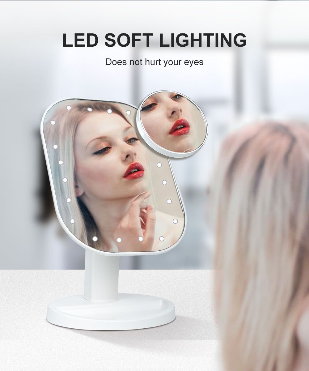 4. Встроенный 20 светодиодный светильник, удобно прикасаться к макияжу в тускло освещенных местах.