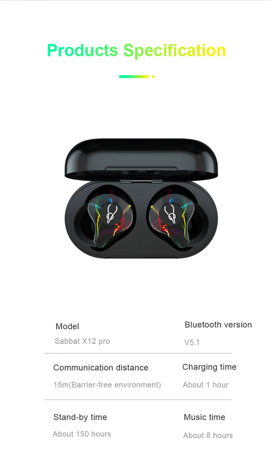 Sabbat X12 Pro TWS Wireless BT Earphone Sport Hifi Headset Waterproof HD Stereo Ear Buds Active Noise-Cancel For Phone
