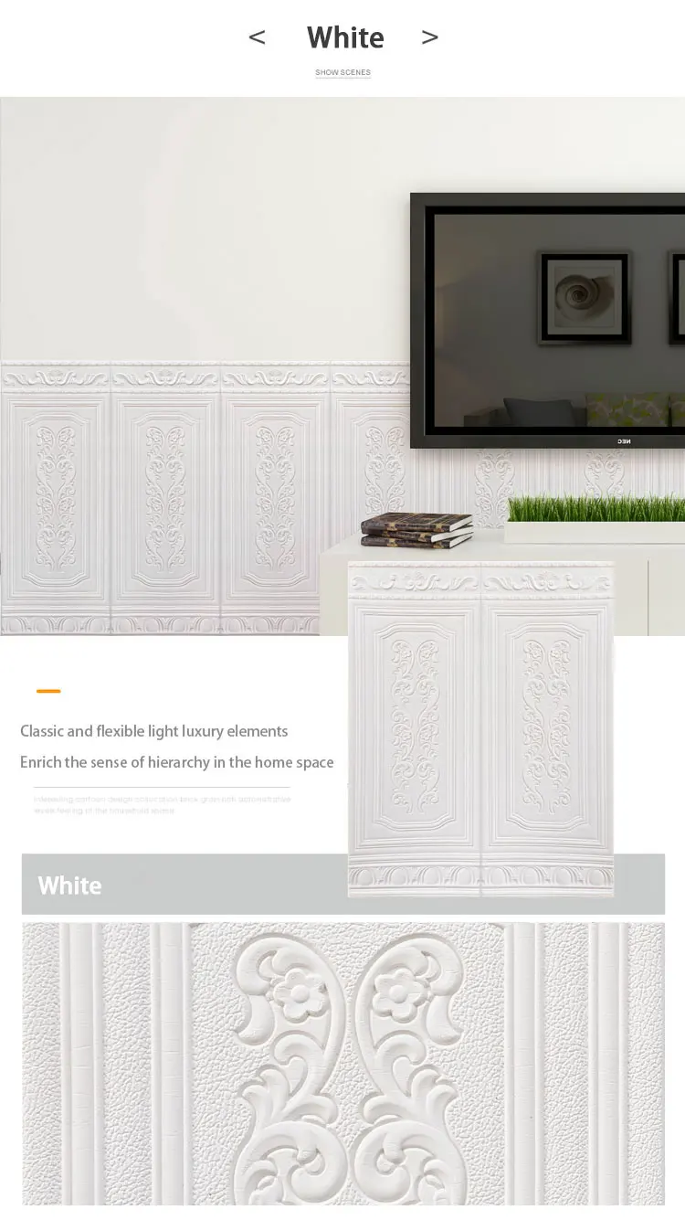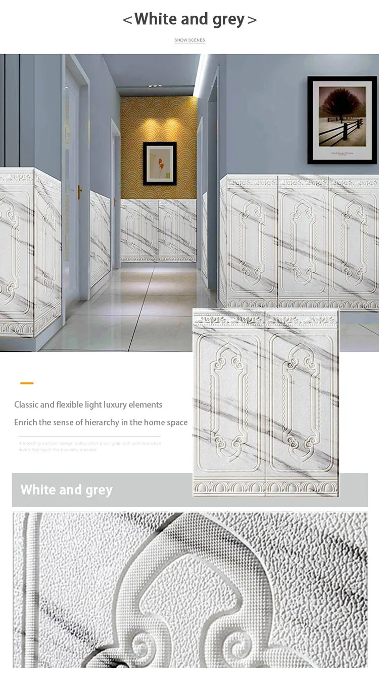 Compared with wallpaper, it is safe, environmentally friendly, non-toxic and tasteless, soft material, 3D effect, DIY, self-adhesive, easy to install, random collage and arbitrary cutting. It has better noise reduction, sound insulation, anti-collision, easy cleaning, moisture-proof and mildew-proof effects.