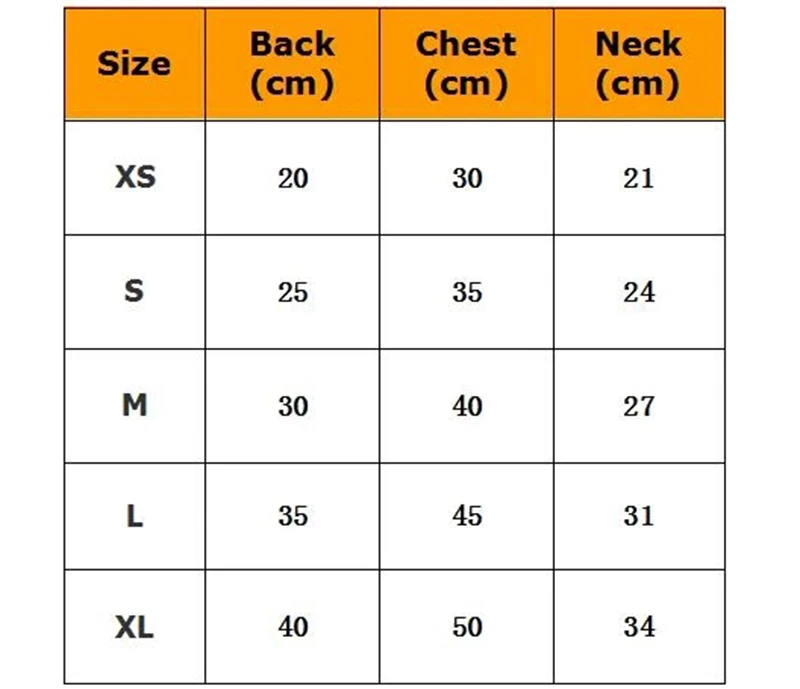 4. Для того, чтобы иметь более удобную одежду, пожалуйста, выберите больший размер вашего питомца, если у вас широкая одежда.