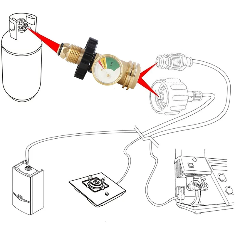 [Безопасность] датчик газового бака может обнаруживать опасные утечки и считывать уровень топлива с первого взгляда с помощью цветного циферблата снаружи. Этот переходник для пропана хорошо запечатан для обеспечения вашей личной безопасности при использовании его для разделения газа.