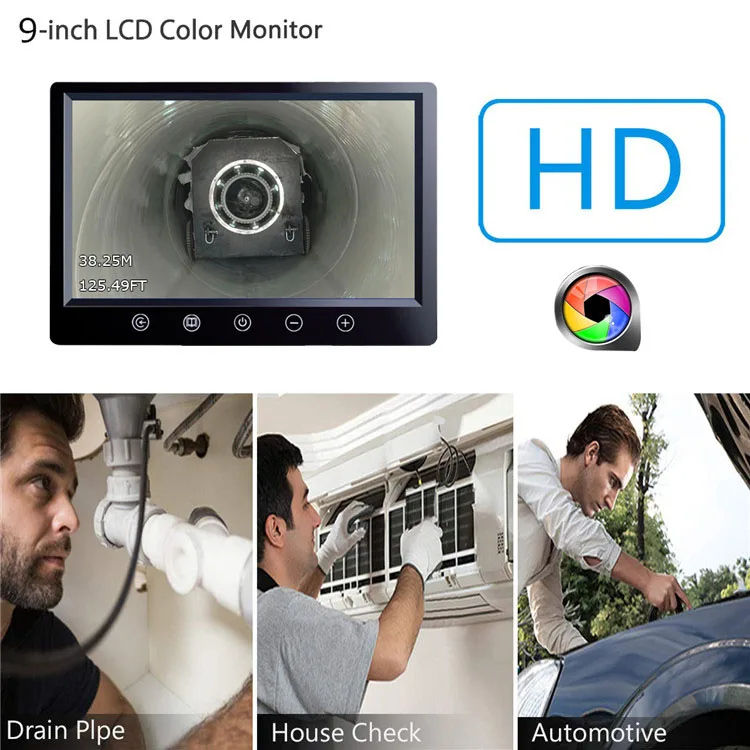 Профессиональный водоотводная труба/канализационных труб Инспекционная камера предназначена для лаков для ногтей с 9 дюймов цветной TFT ЖК-монитор с солнцезащитным козырьком для приготовления пищи на воздухе инспекции. Материал проволоки-Стекловолоконный стержень (диаметр: 4,9 мм), антикоррозийный/холодный/растягивающийся.