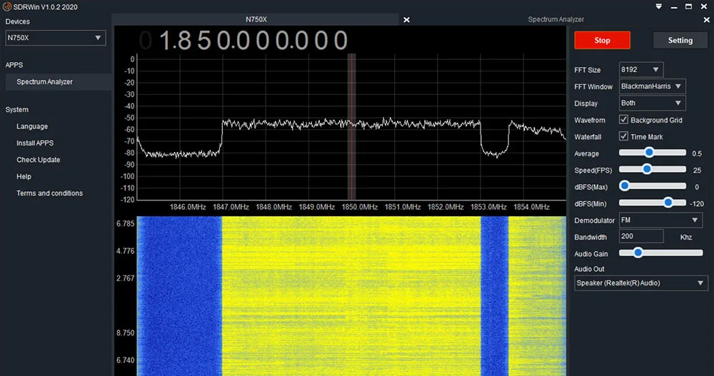 Программное обеспечение SDR, разработанное SDRWIN, может выполнять базовый спектральный анализ, генератор сигналов и быструю проверку продукта.