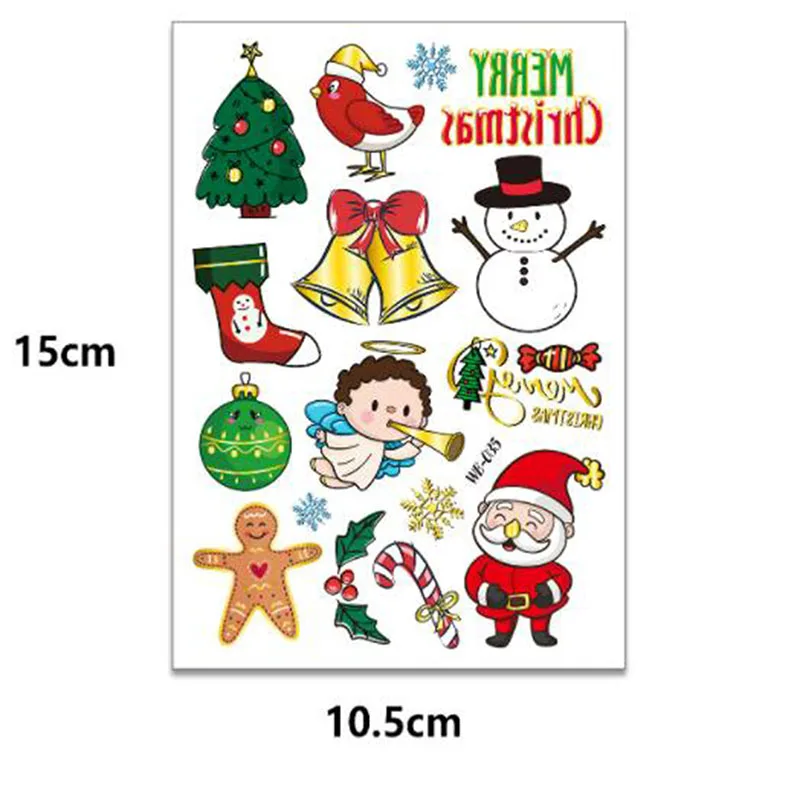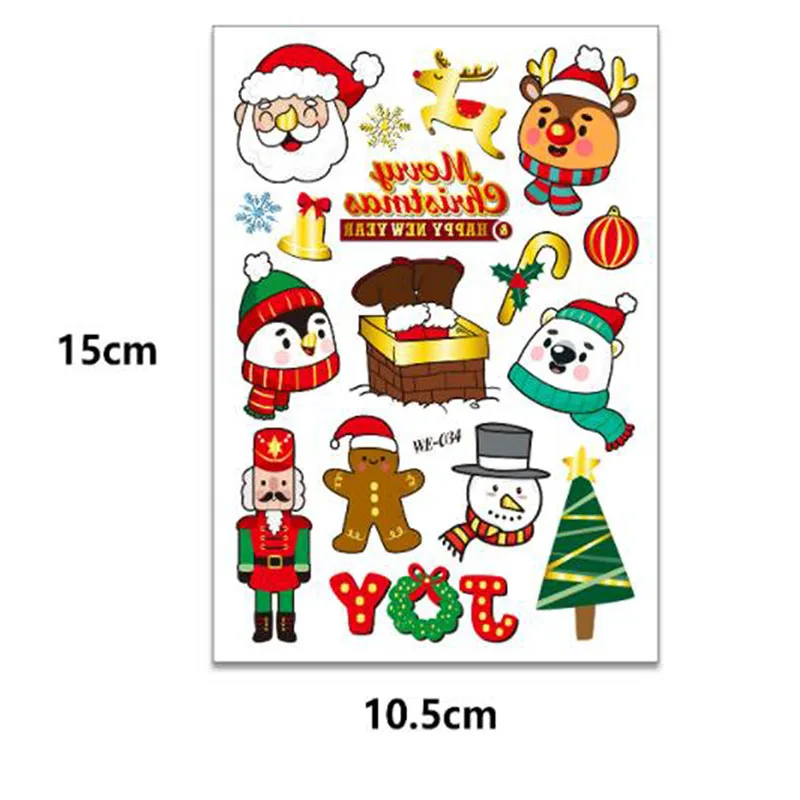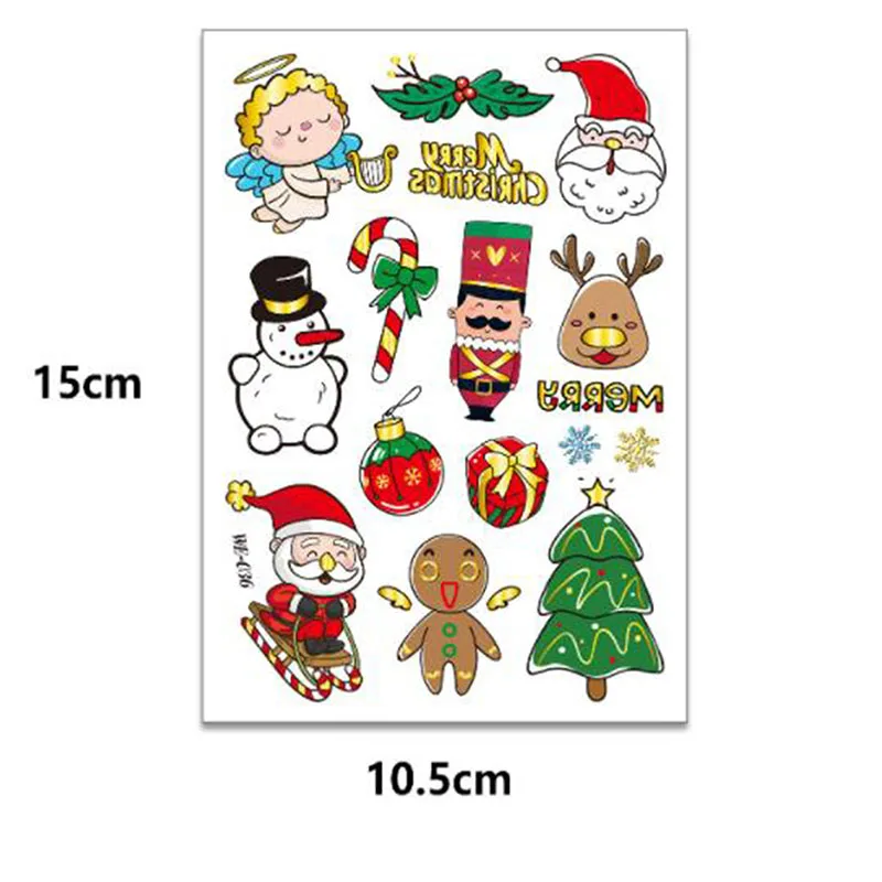 Рождественские наклейки для татуировок с золотым тиснением для детей временные поддельные татуировки Снежинка Санта-Клаус крутая наклейка для татуировок для детей