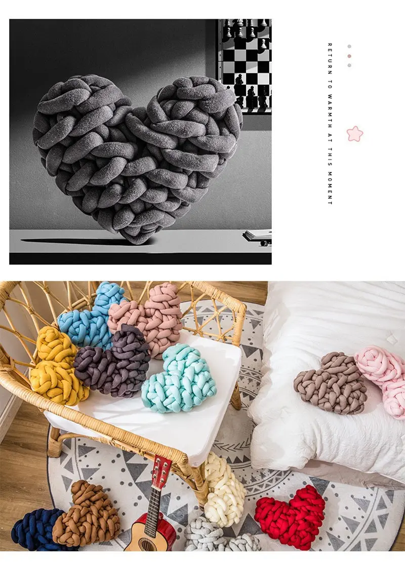 INS любовь сердце Рука Заплетенный в узел Подушка DIY Вязание Коренастый пряжа диван стул спинки подушки автомобильное сиденье кровать пледы Подушка домашний декор25