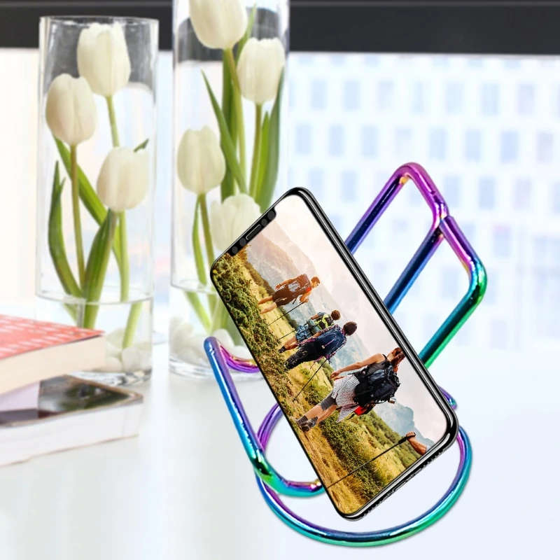 Гладкая кромка, прочная, легкая, портативная, крутая железная подставка для телефона в офисе и доме.