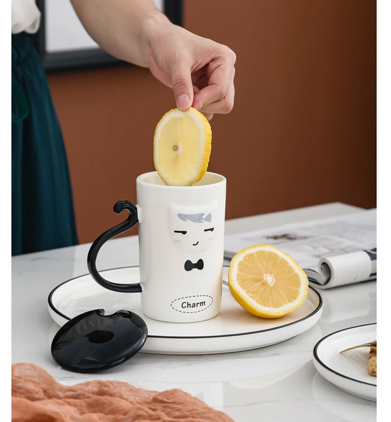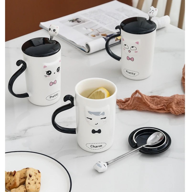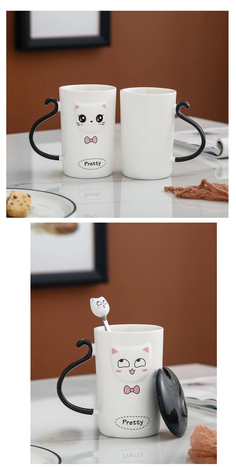 Милый мультяшный озорной кот керамическая кружка кофейная чашка с крышкой Ложка для дома и офиса чашка для завтрака пара чашка для воды подарок для друзей