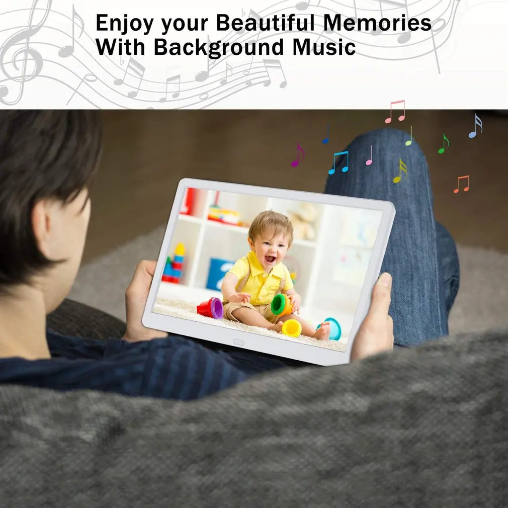 Особенности: 1. Он изготовлен с 10,1 дюйма высокой четкости светодиодный цифровой экран с разрешением 1024x600. 2. Особенности: Функция синхронизации музыки и изображения/Поддержка 90% формата 1080P воспроизведения видео высокой четкости/функция раздельного воспроизведения музыки/часы и функция вечного календаря. 3. Кроме того, он имеет функцию переключателя таймера, это хороший дизайн, вы можете установить время дня, чтобы включить, когда выключить, используется ли он в качестве фоторамки или рекламной машины, это хороший выбор. 4. Вы можете загрузить любимую музыку на цифровую Карту Безопасности или флеш-накопитель USB и воспроизвести ее на фоторамке. 5. 10 дюймов высокой четкости IPS экран приносит вам четкие, натуральный фото и великолепным видом под любым углом, а не затемненный экран. Описание: Это займет 10-дюймовая цифровая фоторамка, а также высокой четкости консультационное устройство. Характеристики: Экран: 1024x60 0 IPS LCD Соотношение сторон: 16:9 Вращающийся ангел: 90 ° /180 °/270 ° Время отображения: 5 секунд/15 секунд/30 секунд/1 минуту/15 минут/30 минут/45 минут/1 час Мощность: 5 В, 2 А Цвет: белый, черный Размеры: 243*163*30 мм (9,6*6,4*1,2 дюймов) Версия: США/ЕС (опционально) Посылка включает в себя: 1x10 дюймов Gigital фоторамка 1 пульт дистанционного управления 1 х адаптер питания переменного тока 1 x Руководство пользователя 1 x держатель