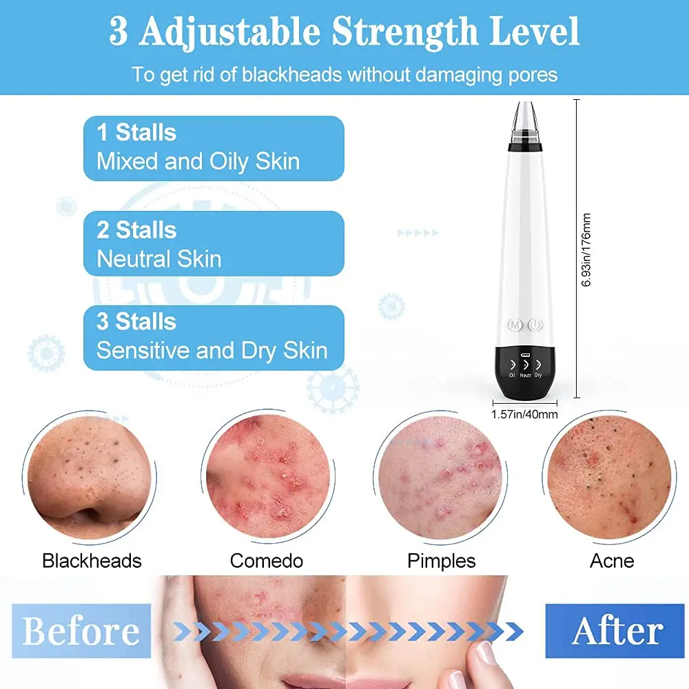 🔥[Позаботьтесь о своей красоте]Наш вакуум для удаления черных точек имеет более Мощное всасывание и более глубокое очищение вашей кожи. Эффективно удаляет черные головы, белые головы, омертвевшую кожу. Перед использованием вакуумный аппарат для очистки пор, пожалуйста, используйте горячее полотенце или отпариватель для лица, чтобы открыть пору. Смазка и остатки макияжа. Не позволяйте всасыванию оставаться слишком долго на одном месте в чехол от покраснения.