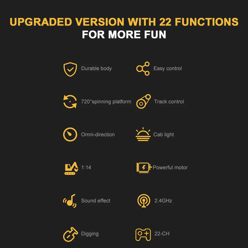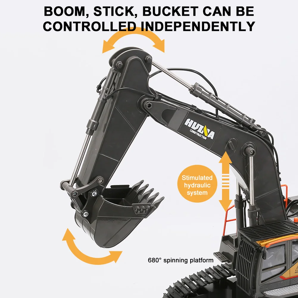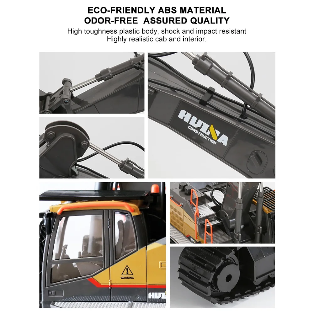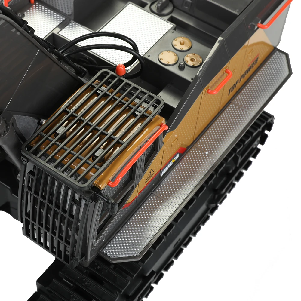 * 1. 1:14 масштабный литой экскаватор в основном изготовлен из сплава и пластика, с высокой прочностью и ударопрочностью. Резиновая дорожка обеспечивает хорошее сцепление с различными районами.