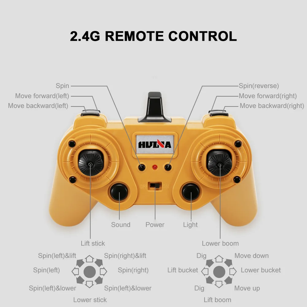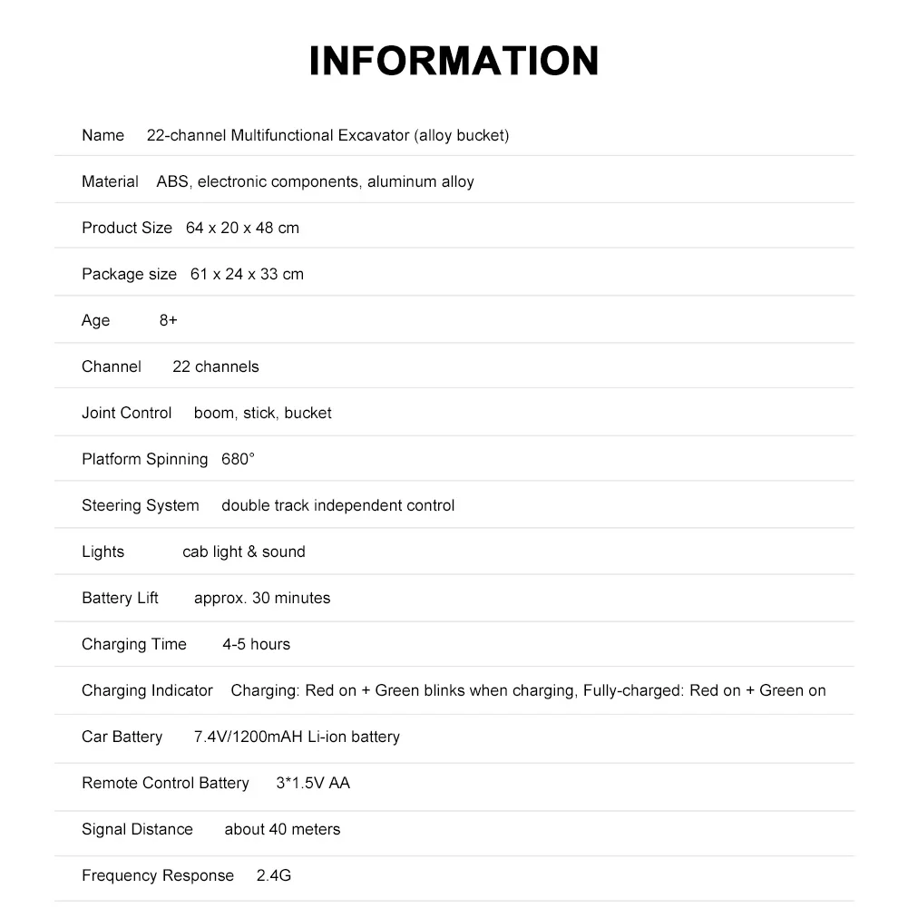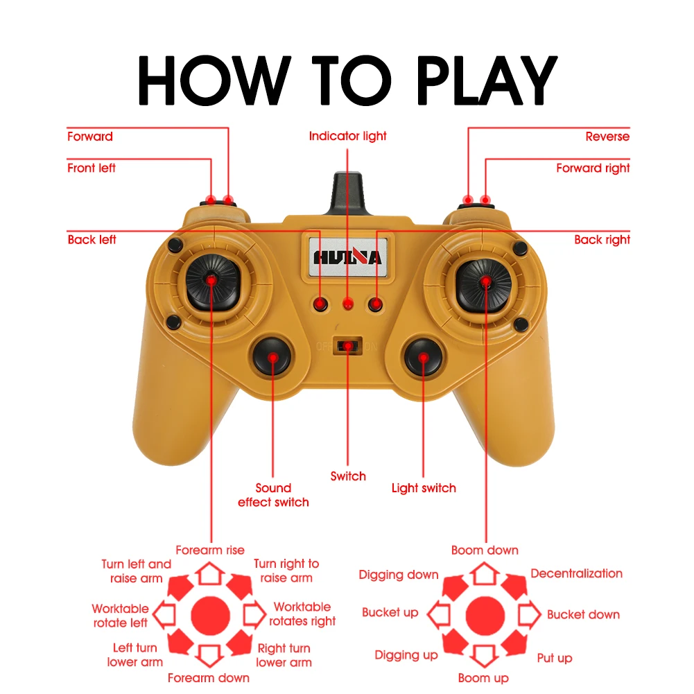 * 3. 22 канала экскаватор достигает движений двигаться вперед/назад, поворот влево/вправо, снижая тем самым/подъема руки, копания, платформа, спиннинг, и т. д.