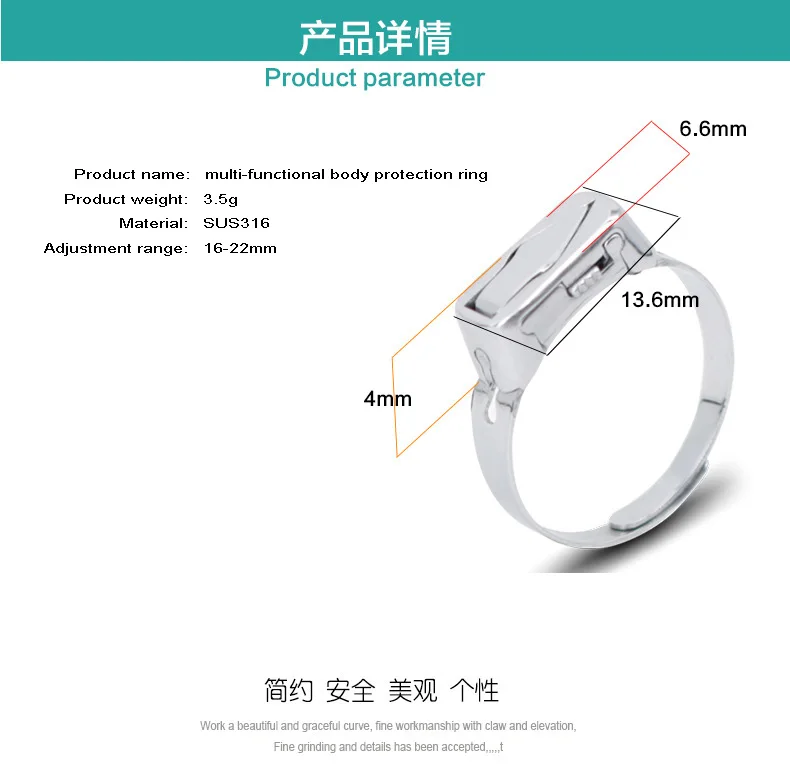 Модное регулируемое кольцо для самозащиты из нержавеющей стали, устройство для маскировки, аксессуары для мужской и женской одежды
