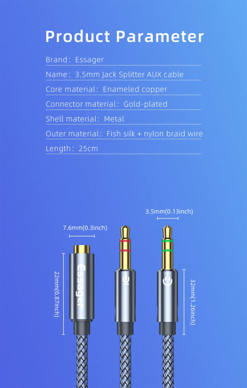 8. Детали изделия: позолоченный штекер (уменьшает потери, улучшает качество звука), металлический корпус (металлическая текстура, прочная и сложная в использовании), рыбий шелк, нейлоновая ткань (прочная и долговечная, не легко сломать)