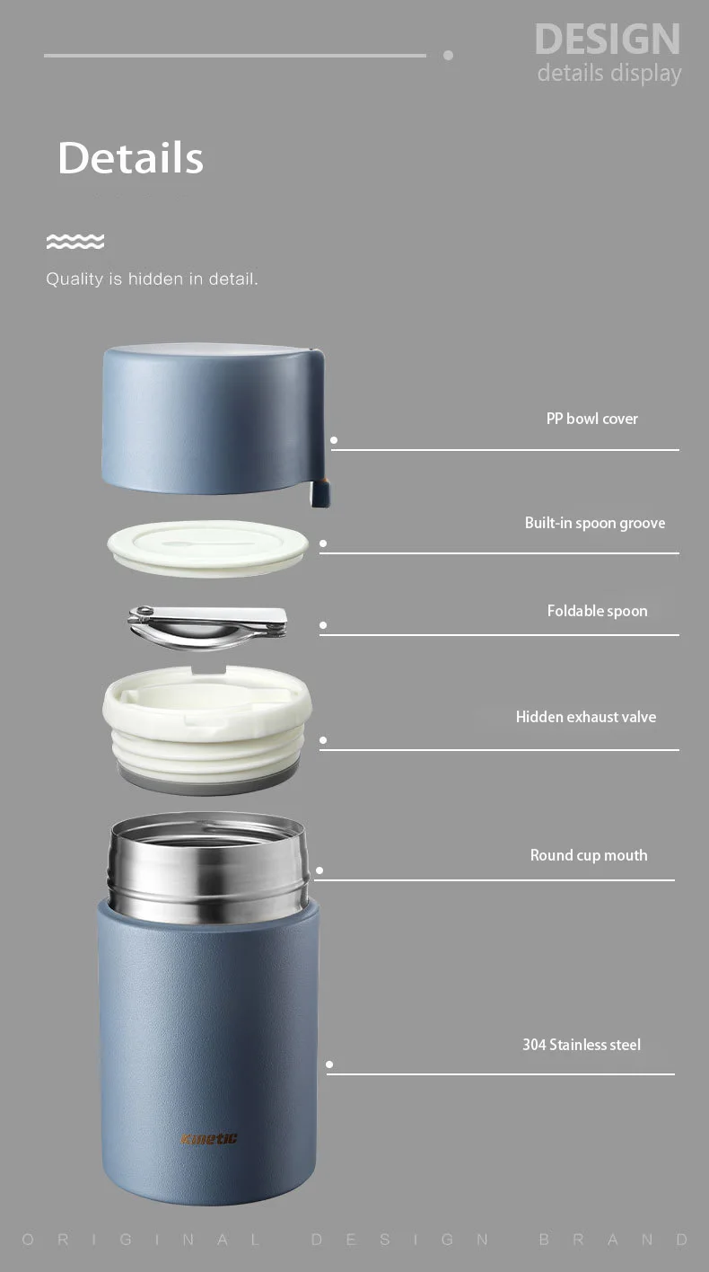 Название продукта: изоляционный тушеный горшок Материал подкладки: нержавеющая сталь 304 Материал ложки: нержавеющая сталь 304 Пластиковые детали: пищевой полипропилен, уплотнительное кольцо: пищевой силикон Емкость: 550 мл Вес нетто: 400 г Размер посылка: 90*90*173 мм Процесс: двухслойная вакуумная конструкция